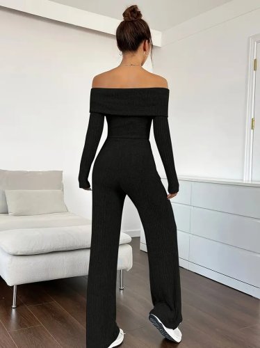 Kadın uzun kollu madonna yaka şardonlu kaşkorse tulum