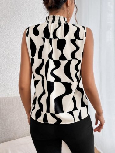 • Kadın kolsuz balıkçı yaka desenli süprem bluz