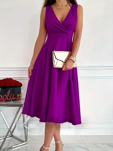 Kadın sıfır kol kruvaze yaka eteği kloş ithal krep mini elbise