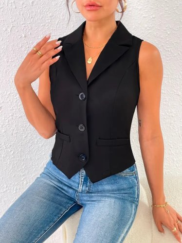 • Kadın kolsuz yakalı önden düğmeli atlas yelek