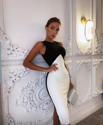 • ÖZEL FİYAT Dalgıç kumaş siyahbeyaz kalem elbise