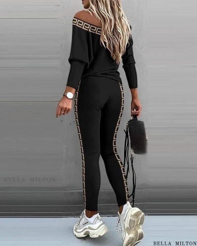 Omuz detay ithal dalgıç kumaş digital baskı garnili ikili takım