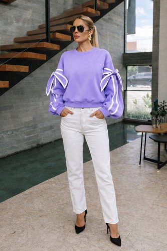 • İthal scuba kumaş garni şerit detaylı sweat bluz