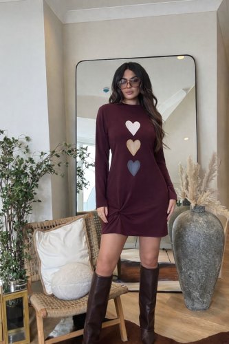 Eteği büzgü detay digital baskı elbise